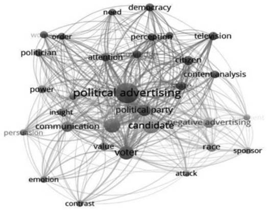 El análisis de los términos de mayor ocurrencia en el área de la publicidad política refleja que en sentido general, la investigación en este campo se concentra en entender las consecuencias de los anuncios políticos como herramientas de los candidatos para influenciar las actitudes de los votantes. Por otro lado, un grupo importante de autores se ha encargado de establecer y contrastar los efectos de la publicidad política negativa sobre el comportamiento del electorado. En términos generales, la investigación de la publicidad política se ha enfocado más en medios tradicionales como la televisión y la prensa y los estudios que analizan los efectos de los anuncios políticos en medios digitales son insuficientes.