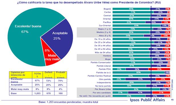 Es importante resaltar cómo la figura presidencial de Álvaro Uribe Vélez significó la dinamización de los medios de comunicación para inflar su favoritismo (como lo deja ver Daniel Coronel) desde la difusión de un “estilo de gobierno particularmente autoritario y, esencialmente, en el proyecto político de ultraderecha” (revista Pueblos, 2008, p. 11.) que prometía acabar con “mano dura” la insurgencia en seis meses, en vista del fracaso presentado en los diálogos de paz que comandaba el expresidente Andrés Pastrana Arango (1998-2002) con las guerrillas de las Farc-EP.