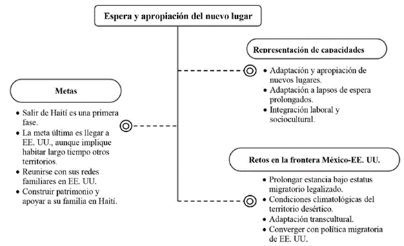 De lo anterior ha emergido la resignificación de la frontera como territorio de espera por parte de los inmigrantes haitianos. La espera ha dado sentido no sólo al espacio, sino también a estas personas y a sus grupos de adscripción que se encuentran en esta situación, donde el tiempo ha quedado suspendido (Musset, 2015), mientras logran cruzar a EE. UU., establecerse legalmente o migrar a otro territorio. Esto último reafrimó el supuesto inicial de que la moviliad transnacional no es un proceso lineal y que su fluidez no es permanente; por el contrario, se debe leer como una cadena de momentos marcados por la espera, la redefinición de estrategias y el ajuste de metas.