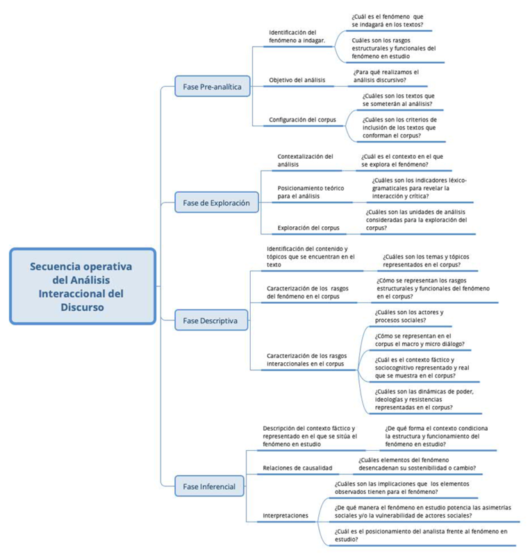 Segundo, la fase de exploración. En esta, se produce la contextualización del análisis mediante la identificación de las condiciones discursivas, situacionales, socioculturales y de conocimiento que rodean los textos que conforman el corpus. Esto permite definir la intencionalidad de sus actores y los múltiples elementos que pueden incidir en su recepción (Van Dijk, 2016). Para aproximarse al corpus, el analista debe tener conciencia teórica y precisar los indicadores léxico-gramaticales que servirán para determinar la presencia de la interacción y la crítica. Esta realidad, junto con los objetivos del análisis (lingüístico, psicológico, social, cultural o educativo), invita a precisar las unidades de análisis (párrafos, cláusulas y oraciones) con las que se realizará el estudio del fenómeno.