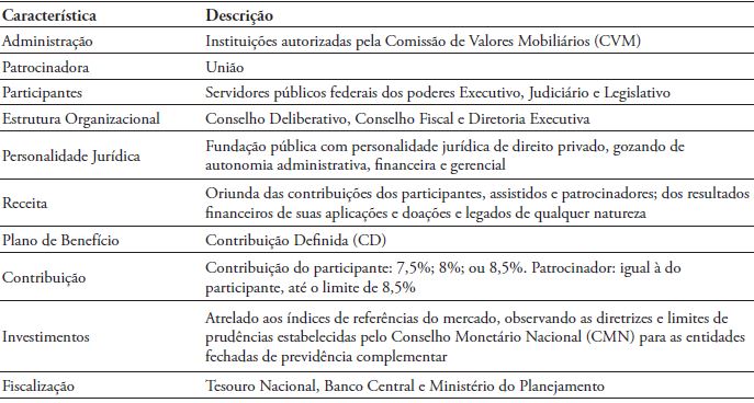 O Quadro 4 sintetiza as principais características administrativas, organizacionais e financeiras do novo regime previdenciário dos servidores públicos federais: