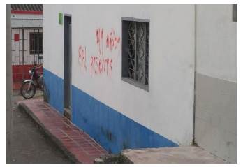 La presencia del EPL se puede evidenciar desde la simbología que se encuentra en puntos estratégicos de la región. Por ejemplo, antes de subir a Ocaña, en la Ruta del Sol-Variante Ocaña Gamarra, se encuentran varios grafitis del grupo insurgente (Figura 2 y 3) y, en la ciudad de Ocaña, en diferentes puntos (Figura 4 y 5).