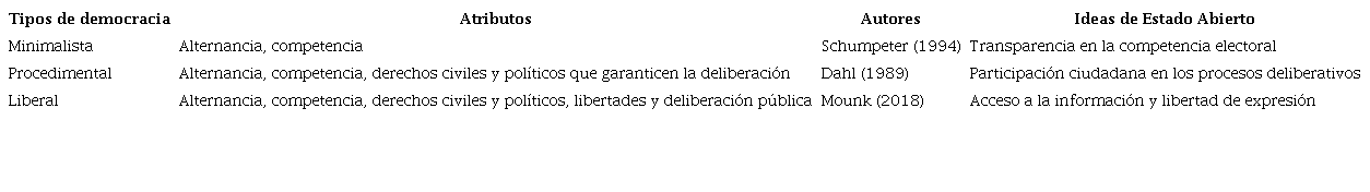 Las anteriores definiciones y su relación con la idea de Estado Abierto se presentan esquematizadas en la tabla 1.