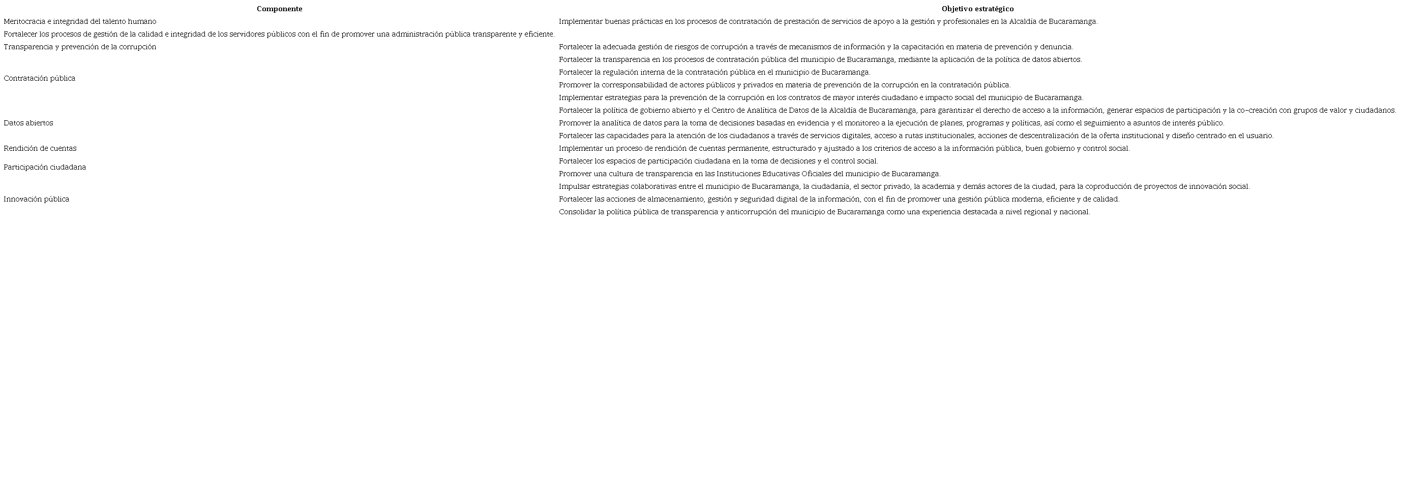 A continuación, se presentan en detalle y anticorrupción adoptados en Bucaramanga, los 16 objetivos estratégicos de transparencia mediante el Decreto 018 del 19 de mayo de 2023.