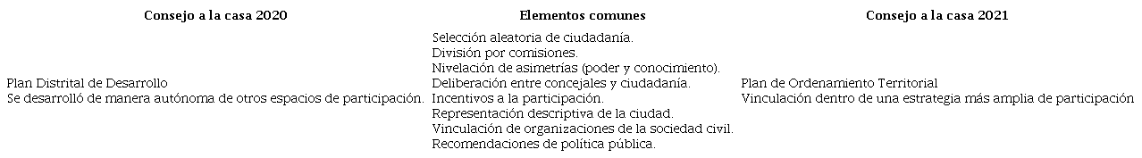 El resultado del proceso de Concejo a la casa permitió ajustar e incluir nuevos elementos que mejoran el diseño metodológico de la estrategia. El principal diferenciador entre las dos estrategias fue la inclusión del segundo ejercicio de Concejo a la casa dentro de una estrategia más grande, denominada La Ruta POT. Esto permitió contrastar la participación ciudadana cuando se realiza involucrando diferentes elementos como deliberación con tomadores de decisión, deliberación con expertos en la temática principal e inclusión de tecnología cívica para aumentar el espectro de participación. De igual manera, articular la deliberación del Concejo a la casa con otros espacios de participación en torno a un tema transversal de la ciudad permitió abrir las posibilidades a la consolidación de procesos de participación relacionados con innovaciones democráticas en la toma de decisiones cíclicas que deben hacer gobernantes y la administración sobre el desarrollo territorial de la ciudad.