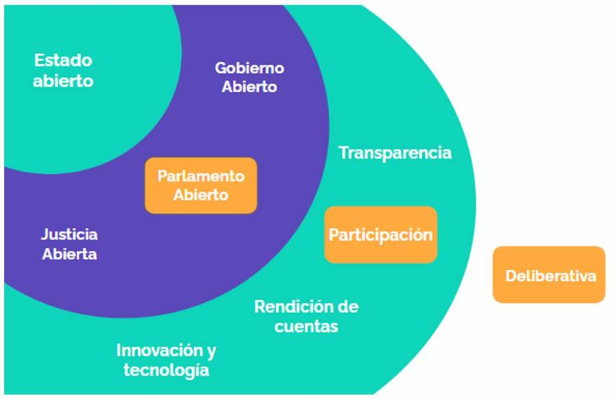 El Parlamento Abierto se entiende como el proceso en el cual un cuerpo colegiado, cuyas funciones están vinculadas a la creación de leyes, decretos, normas u otras medidas legislativas1, implementa estrategias y transforma sus procesos para reducir las barreras que tiene la ciudadanía al participar, vigilar y hacer control político.