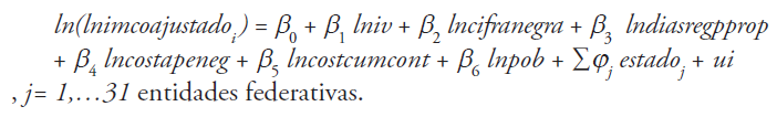 Costo de apertura de negocios (lncostapeneg). Éste se representa por el porcentaje de ingresos per cápita que le cuesta a un negocio el inicio de sus operaciones (licencia de construcción, licencia de funcionamiento, entre otros). Dado que estos trámites son municipales, esta variable representa la eficiencia en el funcionamiento de los gobiernos municipales.