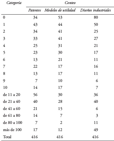 Los modelos de utilidad son concedidos aproximadamente en un intervalo de año y medio y cuatro años, y los diseños industriales en un lapso de seis meses a cuatro años. Por estas razones, Ulku (2004) recomienda utilizar las patentes solicitadas cuando es grande la longitud de la brecha en que tarda en concederse una patente. En este mismo sentido, también se sugiere usar los modelos de utilidad y los diseños industriales solicitados.