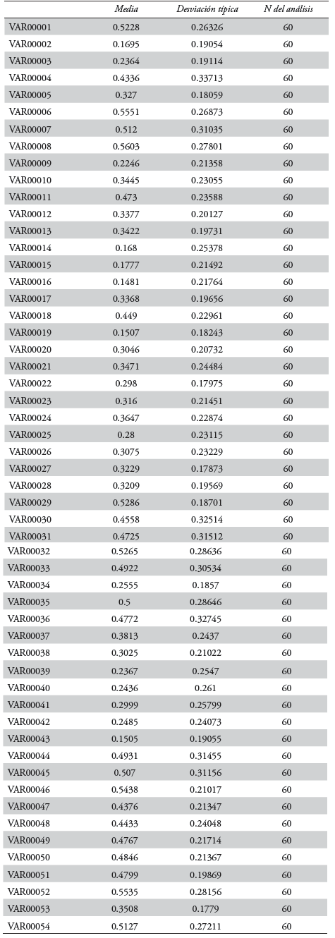 La técnica se hizo operativa4 a través del método Varimax, el cual, siguiendo a Pérez-López (2004), obtiene los ejes de los factores maximi-zando la suma de las varianzas de las cargas factoriales al cuadrado dentro de cada factor. La simplicidad de un factor se define por la varianza de los cuadrados de sus cargas factoriales en las variables observables, esto es: