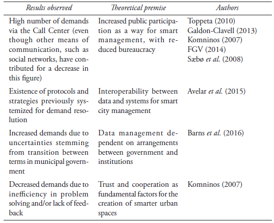 Table 1 summarizes the main findings observed, linking them to the theoretical premises outlined in the second section of this article.