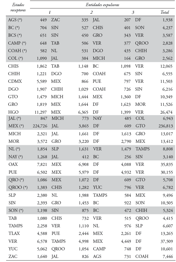 Se encontró evidencia de que las 13 entidades destacadas también tienen mayor número de migrantes.