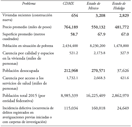 La desocupación laboral y la pobreza son mayores en el Estado de México, así como la delincuencia. La distribución de la cartera de créditos hipotecarios en la ZMVM refleja que en la CDMX se concentra más de la mitad (61.6%), le sigue Nuevo León (14.3%), Baja California Norte (3.6%) y el Estado de México (2.5%). La Sociedad Hipotecaria Federal (SHF) ubica a Hidalgo con 7.5%, del total de créditos.