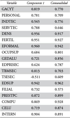 Respecto a la forma de cálculo del IPSI, aquí nos diferenciamos de una parte de la literatura que, para combinar las diferentes variables y subíndices en un índice general, ha recurrido al uso de promedios simples o bien a ponderadores definidos previamente y de forma ad hoc (Ruiz Durán, 2008; USEDA, 2009; DNP-OCyT, 2015; Slaper et al., 2016; Hollanders y Es-Sadki, 2017). En cambio, apelamos al análisis de componentes principales para delimitar de forma no arbitraria las variables a utilizar y los pesos asignados para construir el IPSI (en línea con Sterlacchini, 2006; Buesa et al., 2007; Martínez Pellitero et al., 2008; Dos Santos, 2017).