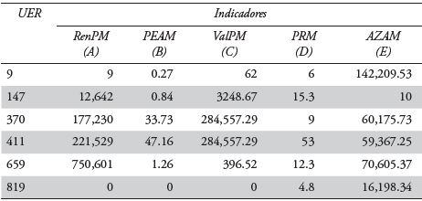 El valor que adquiere cada indicador debe multiplicarse por la jerarquía que le fue asignada en cada UER.