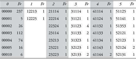A partir de los rangos de cada nivel jerárquico, los valores de cada UER por indicador (Cuadro 10), fueron reemplazados por la jerarquía correspondiente y después agrupados para determinar todas las combinaciones posibles (Cuadro 11). De las 824 UER se obtuvieron 201 combinaciones, cifra alta según las experiencias investigativas referidas. En este caso, el número aumentó por la introducción de la jerarquía nulo o cero (0), pues ésta aportó 53. Así, con base en las combinaciones y el número de UER que las integran (Cuadro 12), se procedió a la conformación de las nubes tipológicas.