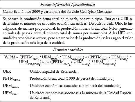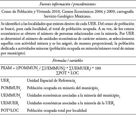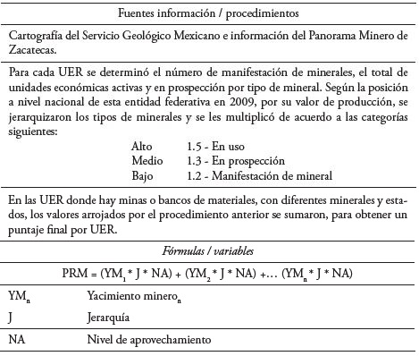 Para la elaboración de los cinco indicadores socioeconómicos, que permitieron revelar los niveles de asimilación de la actividad minera en el estado de Zacatecas, fue necesario establecer determinados criterios y consecuentemente plantear las fórmulas respectivas (Cuadros 3-7).