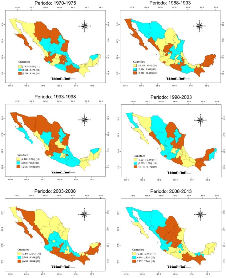 Asuad Sanén, Normand y Quintana Romero, Luis (2010), “Crecimiento económico, convergencia y concentración económica espacial en las entidades federativas de México 1970-2008”, Investigaciones Regionales, núm. 18, Alcalá de Henares, Asociación Española de Ciencia Regional, pp. 83-106.