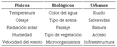 Existen diferentes parámetros de gran interés para el turista, que pueden categorizarse como físicos, biológicos o urbanos, los cuales definen las características del lugar al que se desea visitar (Tabla 1). En el análisis de preferencias y recomendaciones para la visita turística, los parámetros siempre están relacionados con los factores, toda vez que ellos definirán el nivel de importancia de cada uno de ellos. En este trabajo, los parámetros físicos son el conjunto de estudio, ya que pueden automatizarse para obtener información sobre ellos continuamente, y debido a que éstos varían constantemente dependiendo de las condiciones meteorológicas del lugar, se hace necesario su estudio para identificar la condición del sitio recreativo.