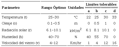 De igual forma, se establecen los niveles máximos o mínimos de cada parámetro que se deben presentar para obtener un nivel de seguridad y aceptación para el turista. En la Tabla 2 se presenta la clasificación de los parámetros con base en su rango óptimo, así como las tolerancias para su medición. Estos valores fueron obtenidos de otros trabajos de investigación especializados en turismo.