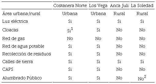 A través del análisis de las entrevistas, elaboramos un cuadro síntesis de las condiciones habitacionales y ambientales de cada localidad (Tabla 4):