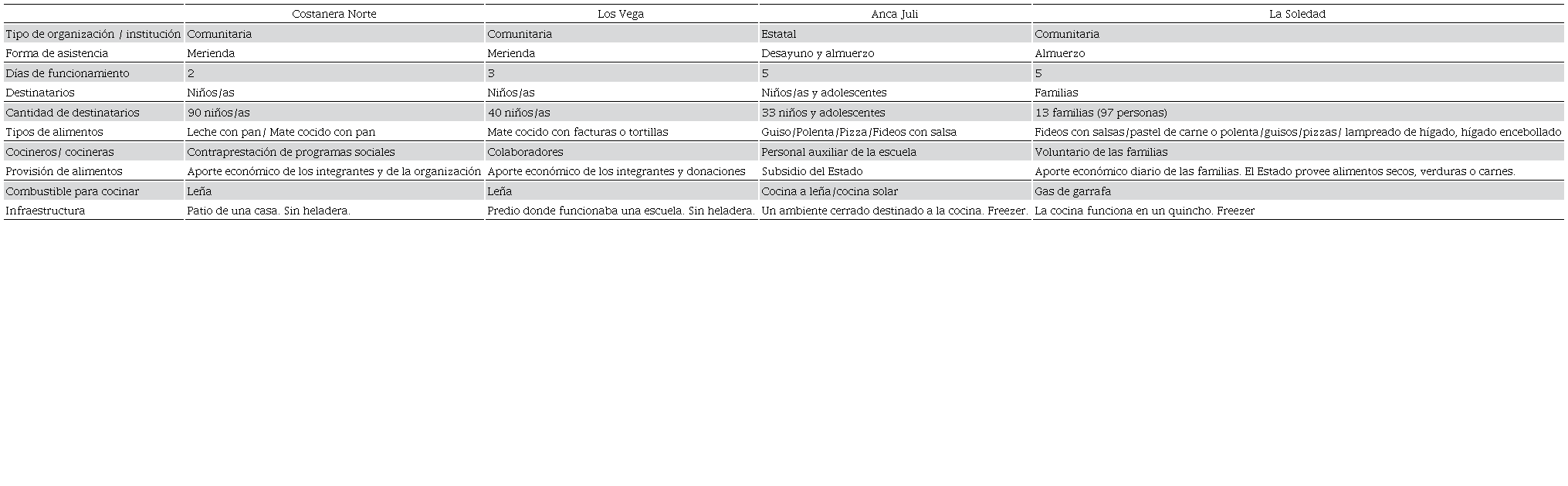 La asistencia alimentaria que brindan las organizaciones o instituciones que integran las referentes entrevistadas adquieren las siguientes características (Tabla 5):