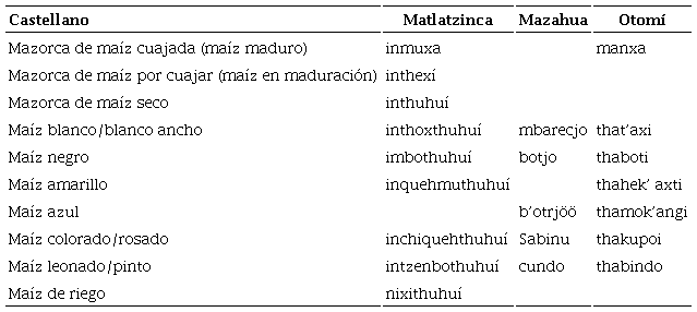 Otras fuentes etnohistóricas que vinculan el cultivo de razas locales en las tierras altas de Toluca son Arte y vocabulario de la lengua matlaltzinga, de fray Diego Basalenque (Basalenque, 1975); Vocabulario mazahua - español, de Muro (1975), donde se identifican características fenotípicas y cualitativas de la agricultura matlatzinca y mazahua; finalmente, los trabajos de De la Vega (2017) referentes al pueblo otomí (Tabla 2).