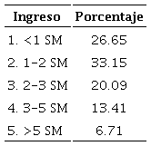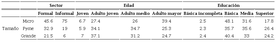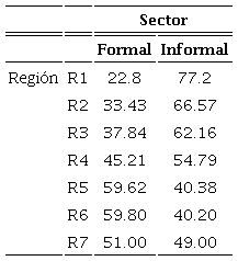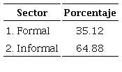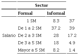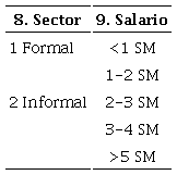 Las variables condicionales son el Sector donde laboran las personas y el Salario percibido (medido en salarios mínimos ―SM―), condiciones particulares en referencia a su trabajo (Tabla 3).