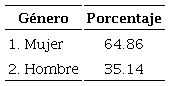 Los datos de porcentaje para las nueve variables se registran en el siguiente vector: VecDat = (%Gen, %Ent, %Eda, %Edu, %Ram, %Tam, %Cri, %Sec, %Sal)/100, donde %Gen indica el porcentaje obtenido para la elección Gen de la variable Género (Tabla 6). Análogamente, para las ocho variables restantes (Tablas 7-14). Se observa que se ha divido entre 100 para obtener valores entre 0 y 1.