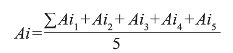 Para ilustrar la aplicación de la fórmula 1, se toma como ejemplo el sector Ai, que tiene, de manera particular, cinco indicadores: 1) agentes particulares, 2) entidades gubernamentales, 3) acuerdo entre estas entidades y bases legales, 4) intereses privados de entidades públicas y 5) intereses políticos de entidades públicas. Estos se denominaron: Ai 1, Ai 2, Ai 3, Ai 4, Ai 5, respectivamente; por tanto, el valor que adquiere el sector está dado por la ecuación 2: