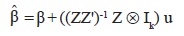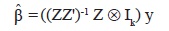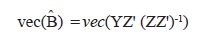 Se puede escribir de la forma vec(Y) = vec(BZ) + vec(U) = (Z' ⊗ Ik) vec(B) + vec(U) o también de la forma y = (Z' ⊗ Ik)β + u