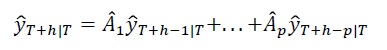 Ahora hay que considerar el pronóstico yT + h cuando los parámetros del modelo VAR(p) son estimados usando mínimos cuadrados. El mejor predictor lineal de yT + h es ahora