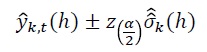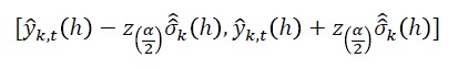 Suponiendo que yt es Gaussiano, un intervalo aproximado al (1 - α)100% de confianza para h periodos de pronóstico adelante, para el k-ésimo componente yk,t de yt es