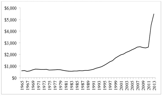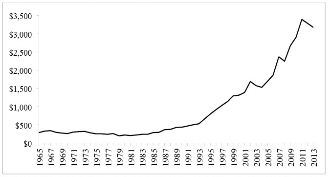 La Figura 1 muestra el costo de contratación de los servicios de los “coyotes” pagados por los migrantes indocumentados de acuerdo al año en el cual cruzaron. En ella se aprecia un constante incremento en los costos de cruce a partir de 1993, año en el cual, da inicio la política de militarización de la frontera.