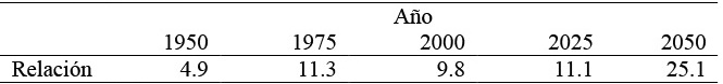 La carga que representaran los viejos para las generaciones más jóvenes, la ilustran las cifras de un indicador denominado “necesidad de apoyo a los padres”, desarrollado por el Centro Latinoamericano de Demografía (Tabla 5).23