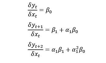 yt = (1 + α1 + α21 +…)m + (1 + α1L + α21L2 + …)(β0xt + β1xt – 1 + ɛt)