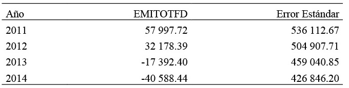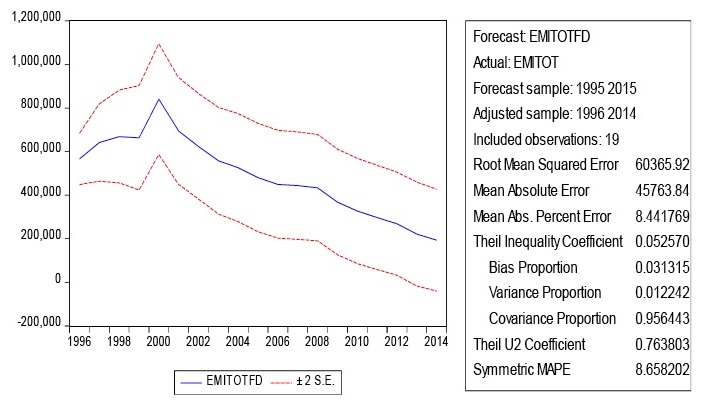 El pronóstico de la emigración total para los años 2011-2014 indica un descenso en este indicador (Figura 10 y Tabla 17).