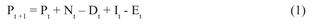 El método más utilizado en la proyección de población es el método por componentes (CEPAL, 2006) que considera la siguiente ecuación general:
