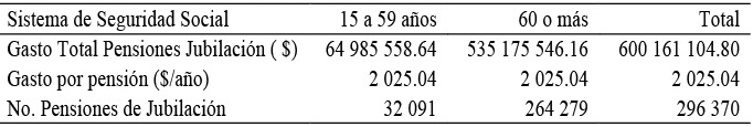 En el grupo de población de 60 o más años se encuentran 264 279 pensionistas cuyo gasto anual en pensiones se sitúa alrededor de 530 millones de dólares, casi 90 por ciento del gasto total en pensiones de jubilación.