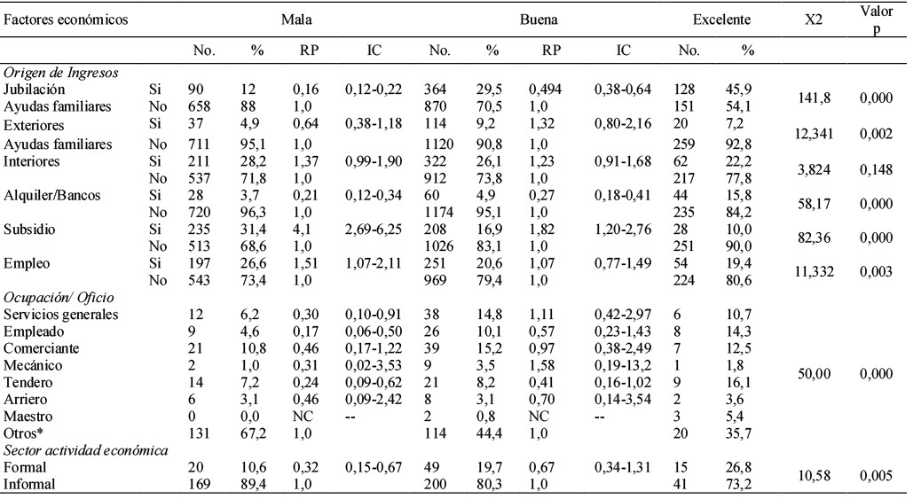 Por otra parte en este estudio se encontró que el desempeñar alguna ocupación u oficio es un factor protector para disminuir la percepción de mala calidad de vida, ya que le permite mantenerse activo mental y físicamente, así como obtener ingresos como remuneración a sus servicios. Por otra parte, aquellos adultos mayores que pertenecen al sector informal tiene un riesgo mayor de considera su calidad de vida como mala, lo cual puede deberse a la usencia de prestaciones sociales y garantías que le brinden seguridad para los años venideros, puesto que la mayoría de estas personas no se encuentran cotizando para adquirir una jubilación (Yanguas et al., 2006).