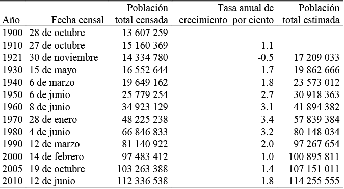 En la Tabla 1 se puede observar un lento crecimiento de la población en las primeras décadas del siglo XX, el cual se aceleró entre 1950 y 1970, y para 1990 muestra una clara desaceleración. Pero la población no es inmóvil, y como se revisará más adelante, este crecimiento también ha estado acompañado de concentración, la que ha incidido particularmente en el Estado de México.