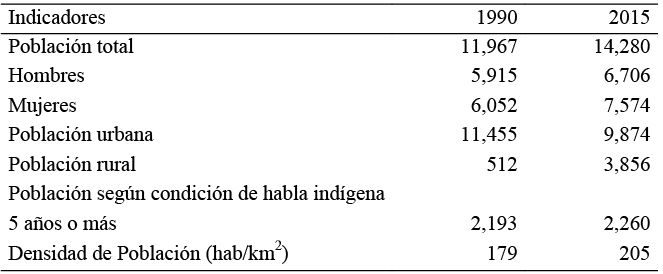El análisis de las características sociodemográficas de un territorio, resume el proceso histórico del comportamiento socioeconómico, político y cultural de una sociedad y, a su vez, configura la estructura y dinámica demográfica que observará dicha población en su futuro tanto a mediano como a largo plazo (López, 2009). Para Calpan, la Tabla 1 muestra como su población se incrementó en 19 por ciento en un periodo de 25 años, al pasar en 1990 de 11,967 habitantes a 14,280 en 2015. Asimismo, se observa un crecimiento de la población rural4 en el mismo periodo de análisis, al registrar cuatro por ciento del total de la población en 1990 y 28 por ciento para 2015. Los datos indican también, que la población que habla una lengua indígena se incrementó en tres por ciento.