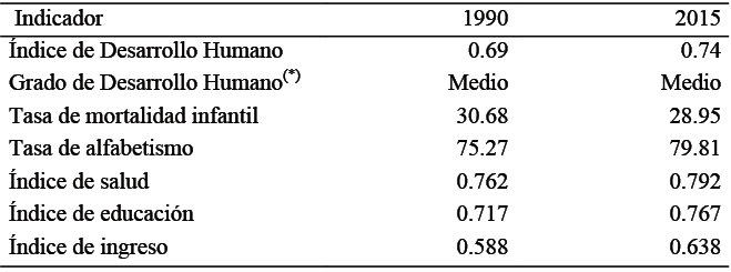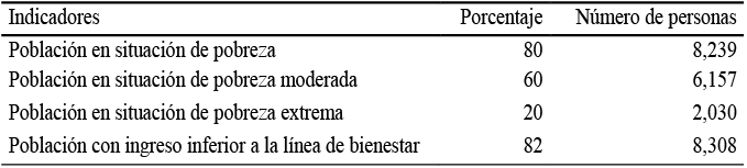 Al analizar el IDH estimado por el Programa de las Naciones Unidas para el Desarrollo (PNUD), el grado de marginación estimado por el Consejo Nacional de Población (CONAPO), así como los indicadores sociales estimados por el Consejo Nacional de Evaluación (CONEVAL), se observan datos contrastantes, por un lado el IDH muestra un grado medio de desarrollo, mientras que la marginación también es media, sin embargo los indicadores sociales expuestos en la Tabla 4, muestran que 80 por ciento de la población del municipio vive en situación de pobreza y 20 por ciento de la población tiene pobreza extrema.