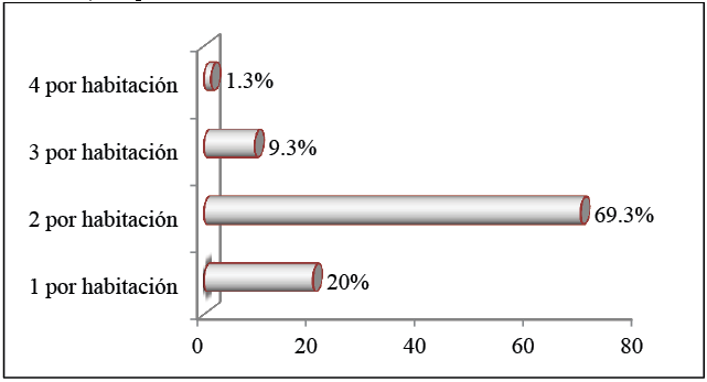 En lo concerniente al hacinamiento, organismos como la CEPAL (2012) consideran en situación crítica las viviendas cuyos dormitorios son habitados por cinco personas o más, en tanto que en el nivel medio se clasifican las viviendas cuyos dormitorios son ocupados por tres o cuatro personas. Considerando lo anterior, la investigación reveló que no existen niveles críticos de hacinamiento, en tanto que sólo 11 por ciento de los encuestados se encentra en situación de hacinamiento medio y una gran mayoría (89.3 por ciento de los casos) se encuentra libre de hacinamiento (Figura 6)