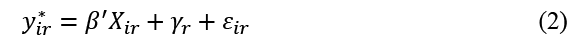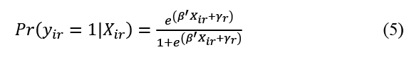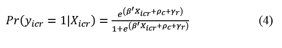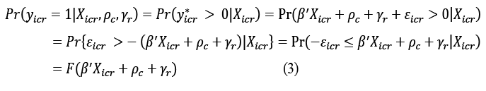 [3]Donde F(·) es la función de densidad acumulativa de -εicr. En el caso de un modelo Logit, F(·) es la función logística, por lo tanto, los modelos a estimar para mujeres con algún año de estudios profesionales están representados por la siguiente ecuación: