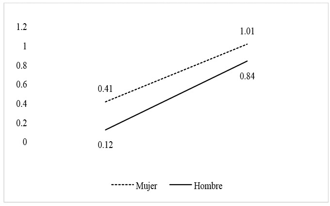 La ganancia educativa es mayor en los hombres que en las mujeres (parámetros positivos para la categoría respecto a las mujeres), con efectos más grandes en el área de Matemáticas.