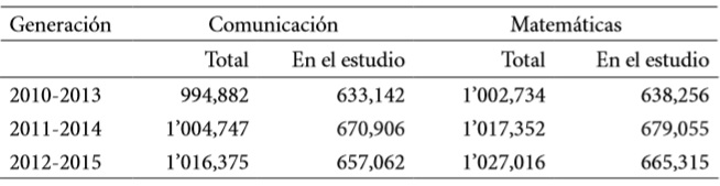 La cantidad de alumnos contemplados para realizar el estudio de ganancia educativa en cada generación se presenta en la Tabla 1.