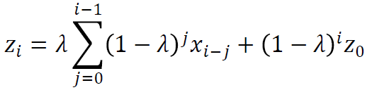 Si consideramos que la variable aleatoria a monitorear es el residuo de desviación, entonces el estadístico EWMA quedaría de la siguiente forma: