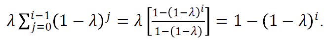 Si se sustituye de manera recursiva zi – 1 en (7), se puede observar cómo los pesos decaen geométricamente con el número de muestras.