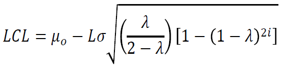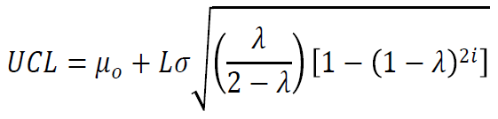 El gráfico EWMA fue introducido por Roberts (1959), el cual se utiliza si el interés está en detectar cambios pequeños en la media del proceso, ya que es el promedio ponderado de las observaciones pasadas y presentes. Es especialmente útil cuando se tienen observaciones individuales por su insensibilidad al supuesto de normalidad (Montgomery, 2009).