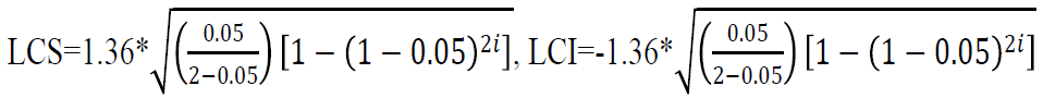 en (10) y (11), cuando el gráfico se ha ejecutado para varios periodos de tiempo, puesto que tenderá a la unidad conforme i aumente. Mientras que L es el factor que determina el ancho de los límites.